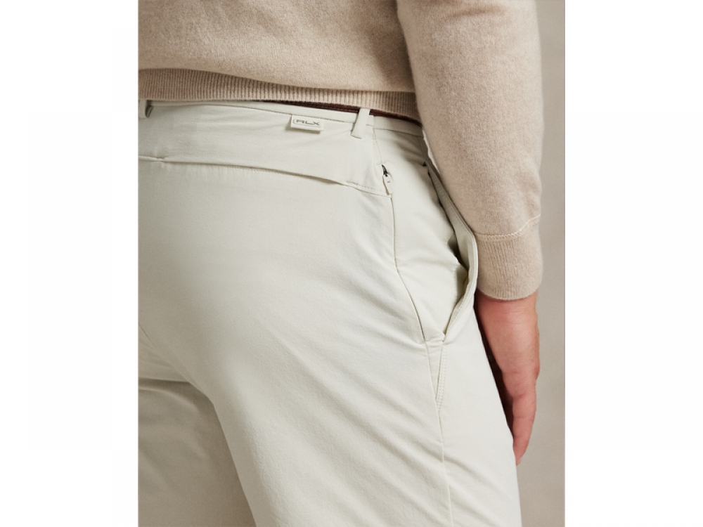 ベルトループ。内側に伸縮性のあるウエストバンド。フックとバーで留めるジッパーフライ。ウエスト中央のフロントにラバー加工の「RLX」エンブレム。フロントに斜めポケットが2つ。